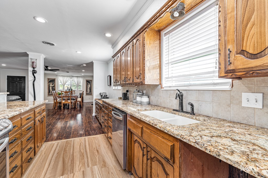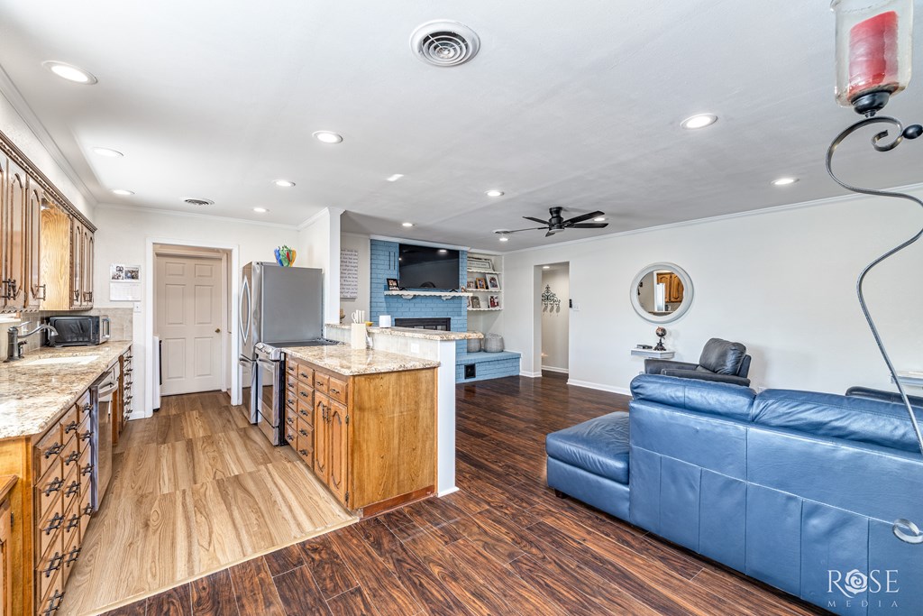 Welcome to a home that perfectly blends spacious living with fresh updates! This fantastic 4 bed, 2 bath property boasts 2,162 sq ft & is positioned on a desirable corner lot. Step inside & be greeted by a bright, airy atmosphere thanks to the fresh paint & flowing open floor plan. Enjoy new flooring in both the kitchen & all bedrooms, providing a clean look throughout. The kitchen is ready for its new chef & includes granite countertops & a brand new dishwasher. You'll love the privacy of the split bedrooms. Retreat to the owner's suite & enjoy a private bath & a walk-in closet. The home's recent upgrades include a new roof, new back door & stylish new fans. Outside, you'll love the large yard, perfect for outdoor gatherings. The attached 2-car garage provides convenient parking & storage. This move-in-ready home has been lovingly updated & is ready for its new owners. With motivated sellers, this incredible opportunity won't last long. Schedule your showing today!
