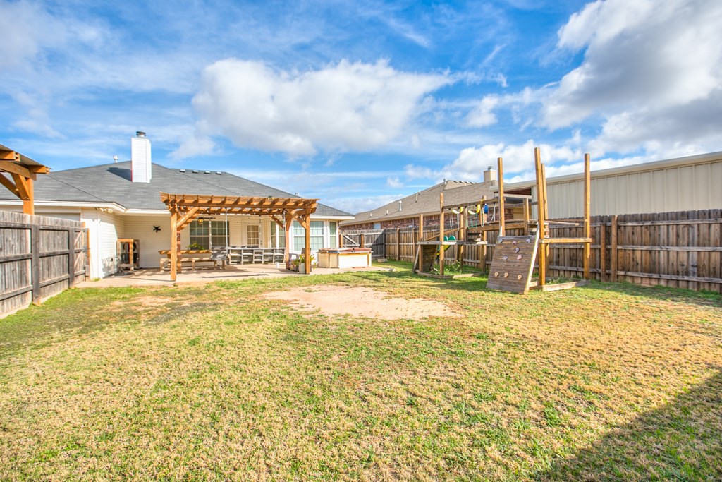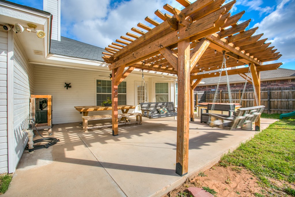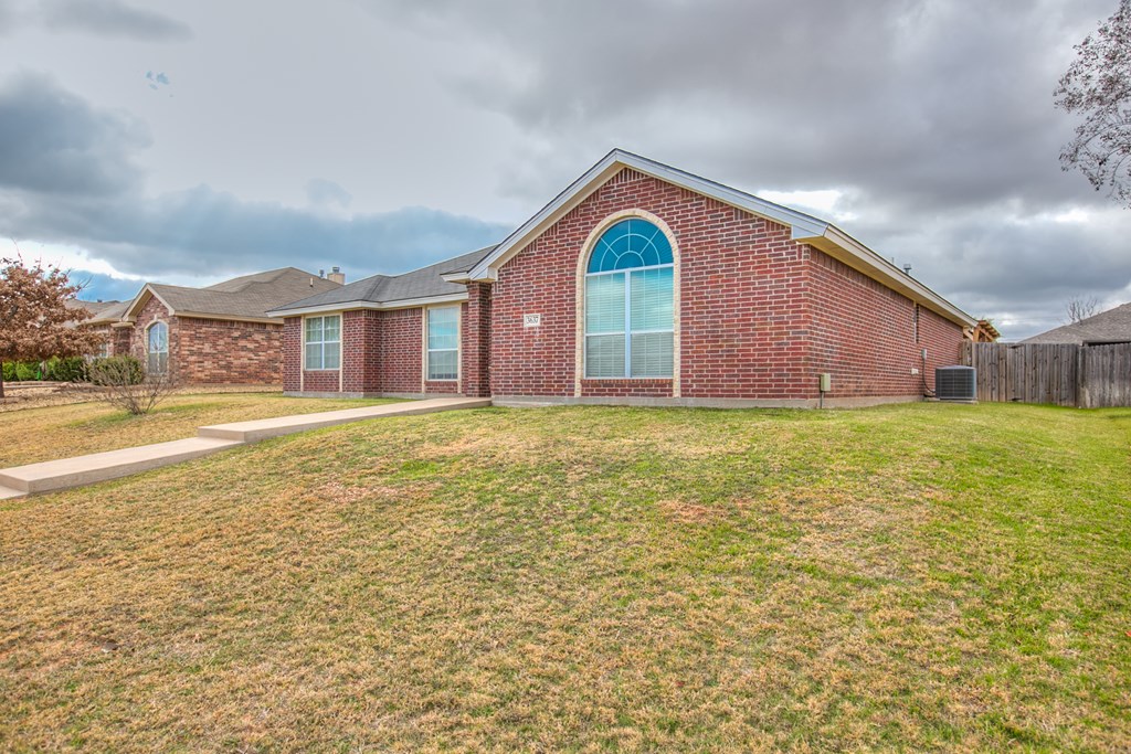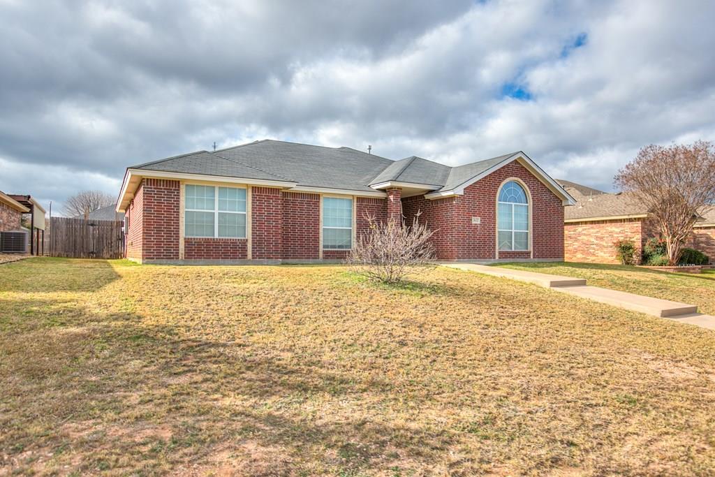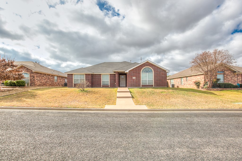 Move-in ready 3 bedroom, 2 bathroom single-family brick home built in 2013, located on a quiet street in the highly desirable southwest area of San Angelo, Texas. This well-maintained home features a split bedroom floor plan with a private primary suite, offering comfort and functionality. The open living area includes a cozy fireplace and flows into the kitchen and dining space, making it ideal for everyday living and entertaining. Enjoy a covered patio and fully fenced backyard with a privacy fence, perfect for outdoor relaxation. An oversized 300+ square foot carport provides ample covered parking and additional storage. Clean, cared for, and ready for immediate occupancy, this home offers a great combination of location, layout, and move-in ready condition. Separate vanities and closets coffered ceiling complete the vibe in the luxury owners' suite.  9 minutes to GAFB and 3 minutes to plentiful shopping opportunities place this awesome home in a premium location.