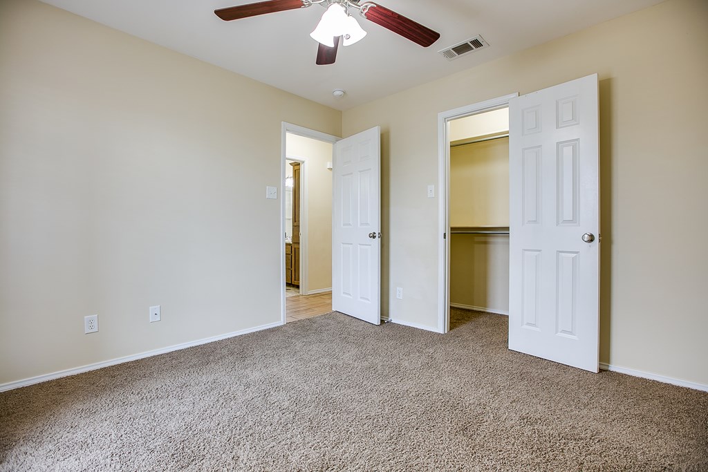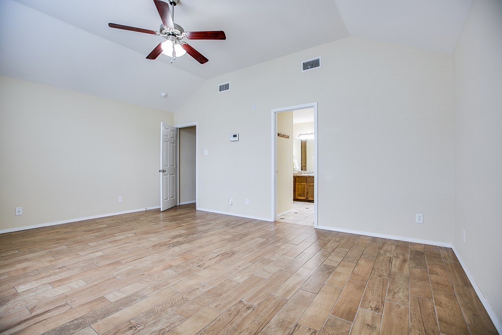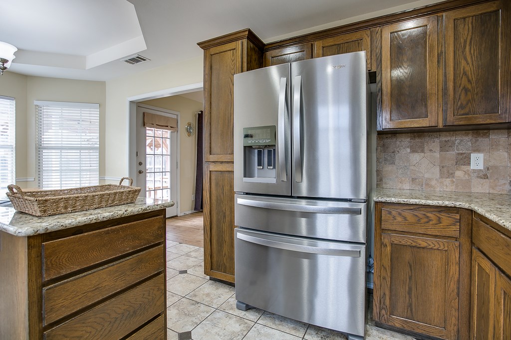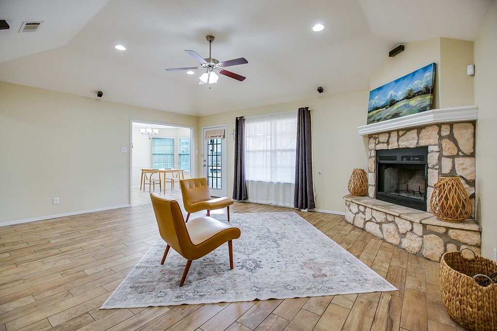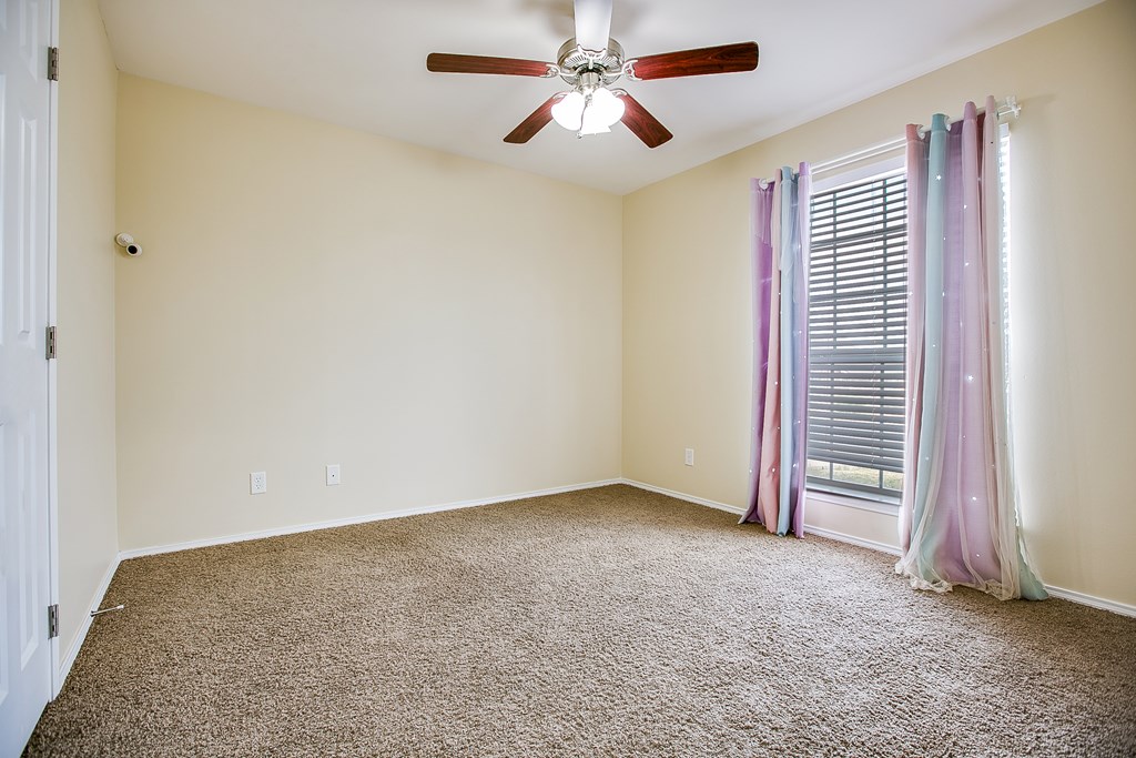 Move-in ready 3 bedroom, 2 bathroom single-family brick home built in 2013, located on a quiet street in the highly desirable southwest area of San Angelo, Texas. This well-maintained home features a split bedroom floor plan with a private primary suite, offering comfort and functionality. The open living area includes a cozy fireplace and flows into the kitchen and dining space, making it ideal for everyday living and entertaining. Enjoy a covered patio and fully fenced backyard with a privacy fence, perfect for outdoor relaxation. An oversized 300+ square foot carport provides ample covered parking and additional storage. Clean, cared for, and ready for immediate occupancy, this home offers a great combination of location, layout, and move-in ready condition. Separate vanities and closets coffered ceiling complete the vibe in the luxury owners' suite.  9 minutes to GAFB and 3 minutes to plentiful shopping opportunities place this awesome home in a premium location.